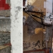 Misty greenhouse window, and curtains behind broken window (10/2011 and 12/2013)